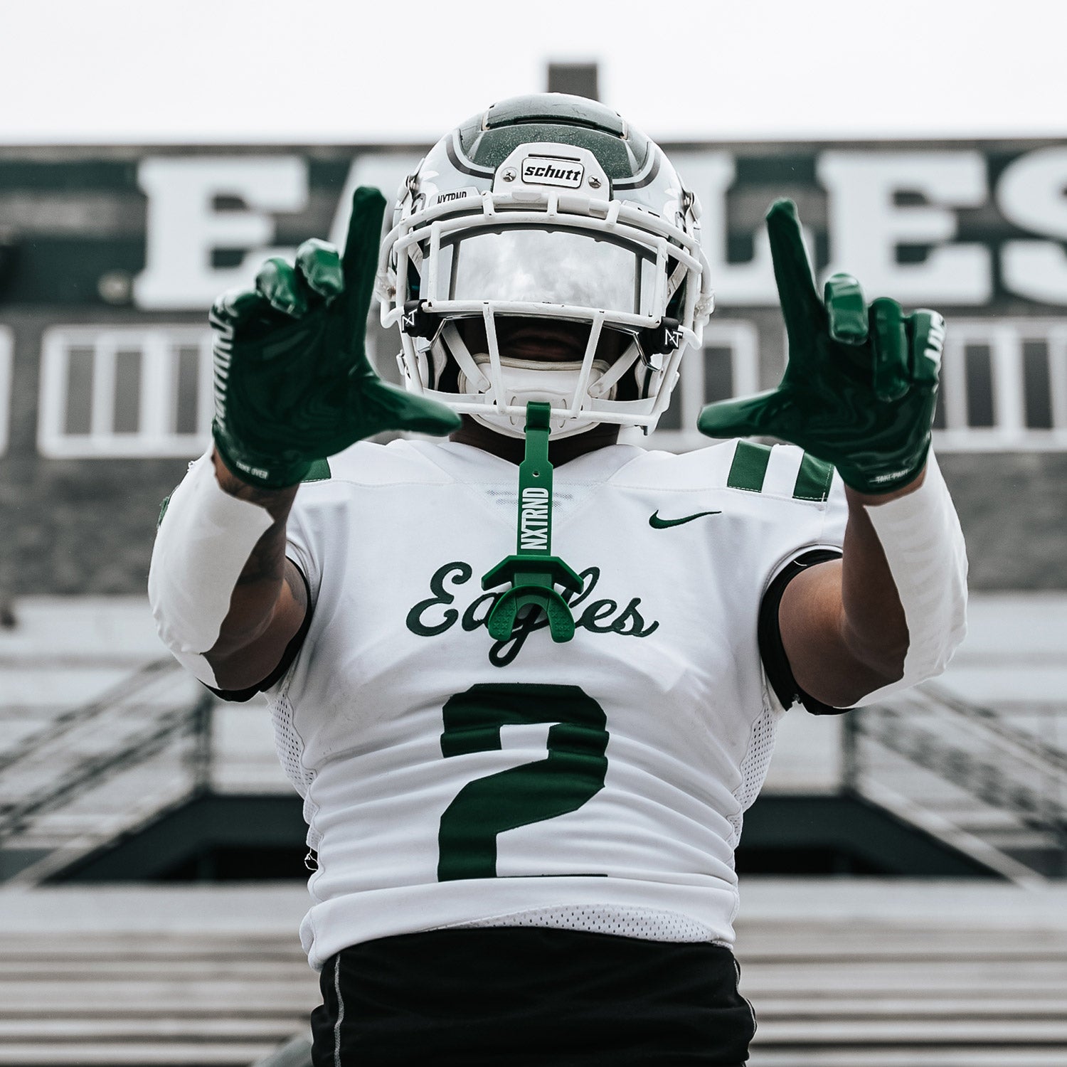 Introducing the Nxtrnd Two® Mouthguard. Featuring a permanent wide silicone strap and comfortable X-pattern bite pads.